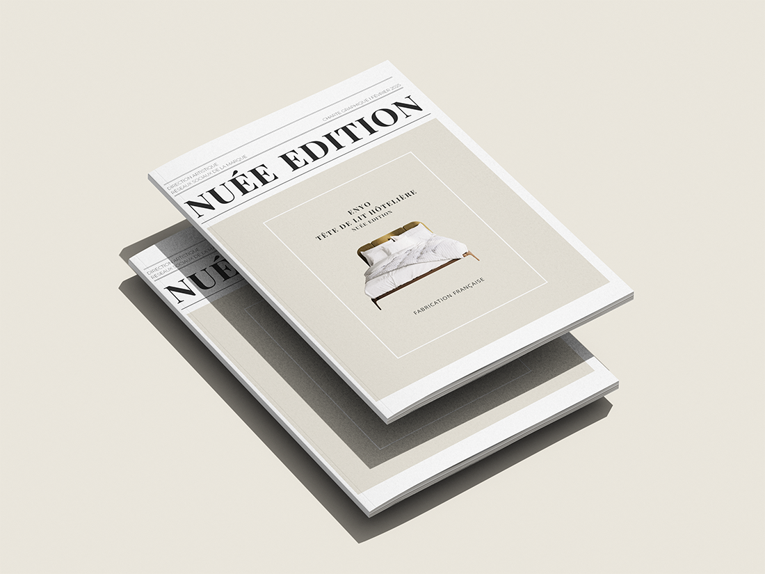 Accompagnement stratégique et direction artistique pour Nuée Édition, marque experte en tête de lit hôtelière. Mise en place d’une stratégie de communication globale pour renforcer le positionnement de la marque dans son secteur.