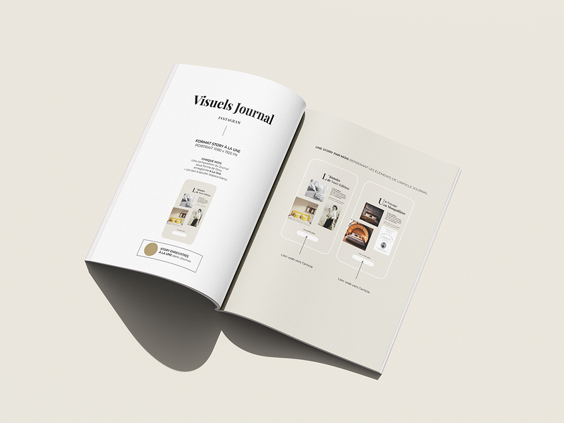 Création et application d’une charte graphique destinée à guider la mise en œuvre de la communication sur les différents canaux : LinkedIn, Pinterest, Instagram, newsletter, et Journal du site web. Chaque support a été pensé pour refléter l’univers raffiné de la marque et consolider sa visibilité.